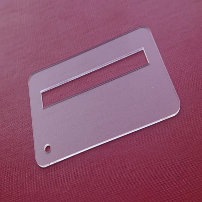 Размер трафарета 85х54 мм., толщина 1,5 мм., размер окна для подписи 10х70 мм.