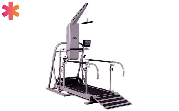 - система разгрузки веса тела: подъёмник с электроприводом с резервным источником питания (встроенные аккумуляторы), обеспечивающим не менее 4 циклов «подъём/опускание» в случае аварийного отключения электропитания + специализированный страховочный жилет *Вместо него возможно использование с рельсовой системой «РеаПорт»