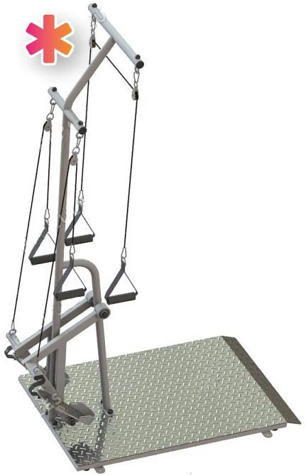 Тренажер предназначен для разработки ног и рук. Ручки, соединенные через блочки, предназначены для разработки плечевых и локтевых суставов, повышению проводимости и кровотока.