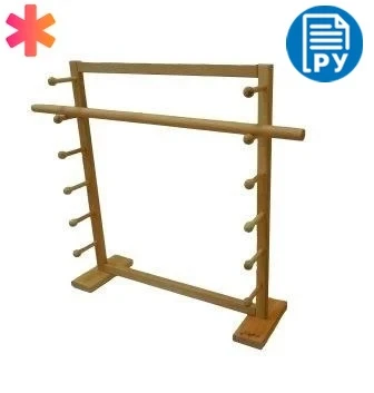 Представляет собой деревянную конструкцию, состоящую из основания, на котором расположена вертикальная рама с 6 горизонтальными перекладинами с ограничителями, в комплект входит палка круглого сечения из натурального дерева, длиной 80 см.