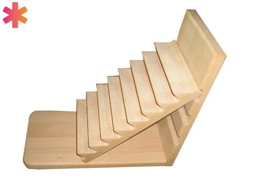 Лесенка из 8 ступенек одинакового размера на специальной панели (подставке) с возможностью изменения положения лесенки. Применяется для упражнений, восстанавливающих и корректирующих движения пальцев верхних конечностей у всех возрастных групп пациентов (дети от 5 лет, подростки, взрослые, гериатрические пациенты).