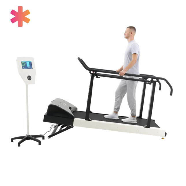 - Биологическая обратная связь (БОС) контролирует скорость дорожки в зависимости от шагов пациента, делая каждое занятие индивидуальным и безопасным.