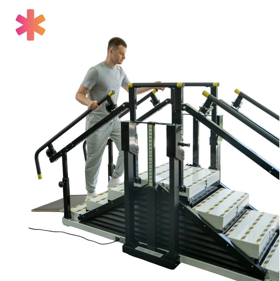 - Регулировка высоты ступеней и ширины перил позволяет подобрать наиболее подходящую конфигурацию для каждого пациента.