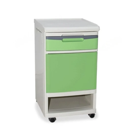 Данное изделие предназначено для хранения личных вещей пациентов, а также может быть использовано в качестве прикроватного столика. Сверху тумбы имеется столешница, также модель оснащена дополнительным выдвижным столиком с углублениями для стакана и столовых приборов.