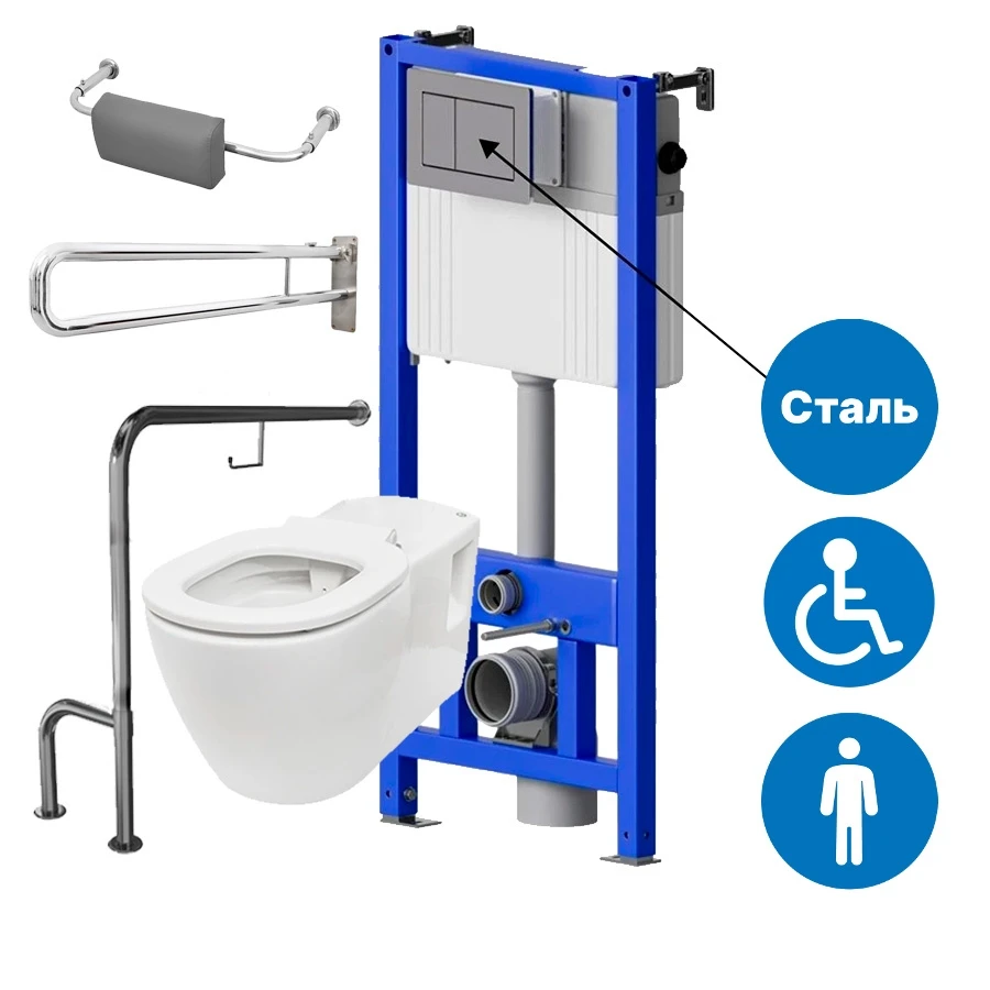 Унитаз для инвалидов подвесной DSTRANA AID с инсталляцией, поручнями и опорой под спину по ГОСТ