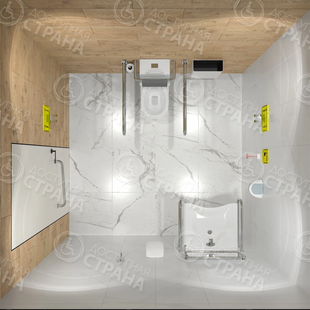 В соответствии с действующими нормами СП 59.13330.2020 санузел должен быть адаптирован для инвалидов специализированным оборудованием (все необходимое учтено в наборе!).