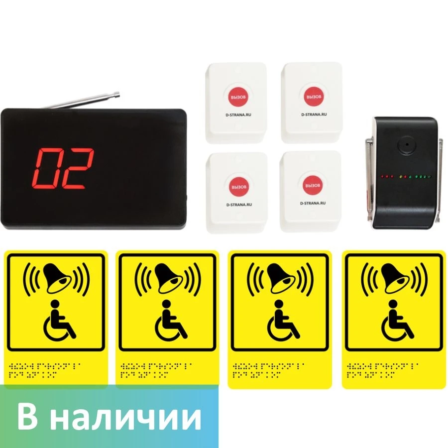 - арт. APE510.4 - система вызова помощи инвалидам: 4 кнопки вызова, 4 таблички, 1 приемник, 1 репитер