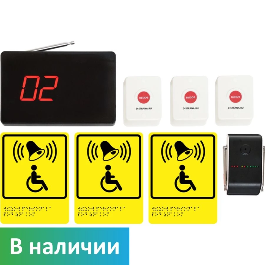 - арт. APE510.3 - система вызова помощи инвалидам: 3 кнопки вызова, 3 таблички, 1 приемник, 1 репитер