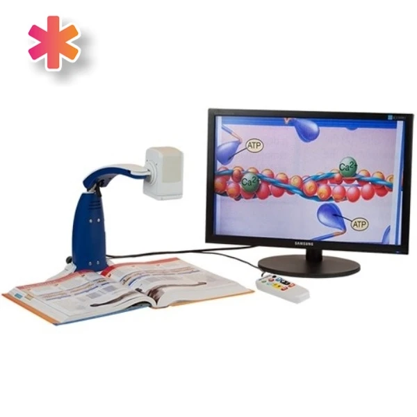 Видеоувеличитель позволяет слабовидящим людям комфортно работать с необходимой им информацией. В зависимости от способа обзора на экране в увеличенном виде можно просмотреть как удаленные объекты, так и объекты, расположенные непосредственно на столе пользователя, например, книги, планы, проекты и т.п