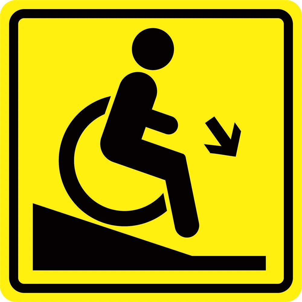 Плоскостный визуальный знак "Осторожно! Крутой спуск".