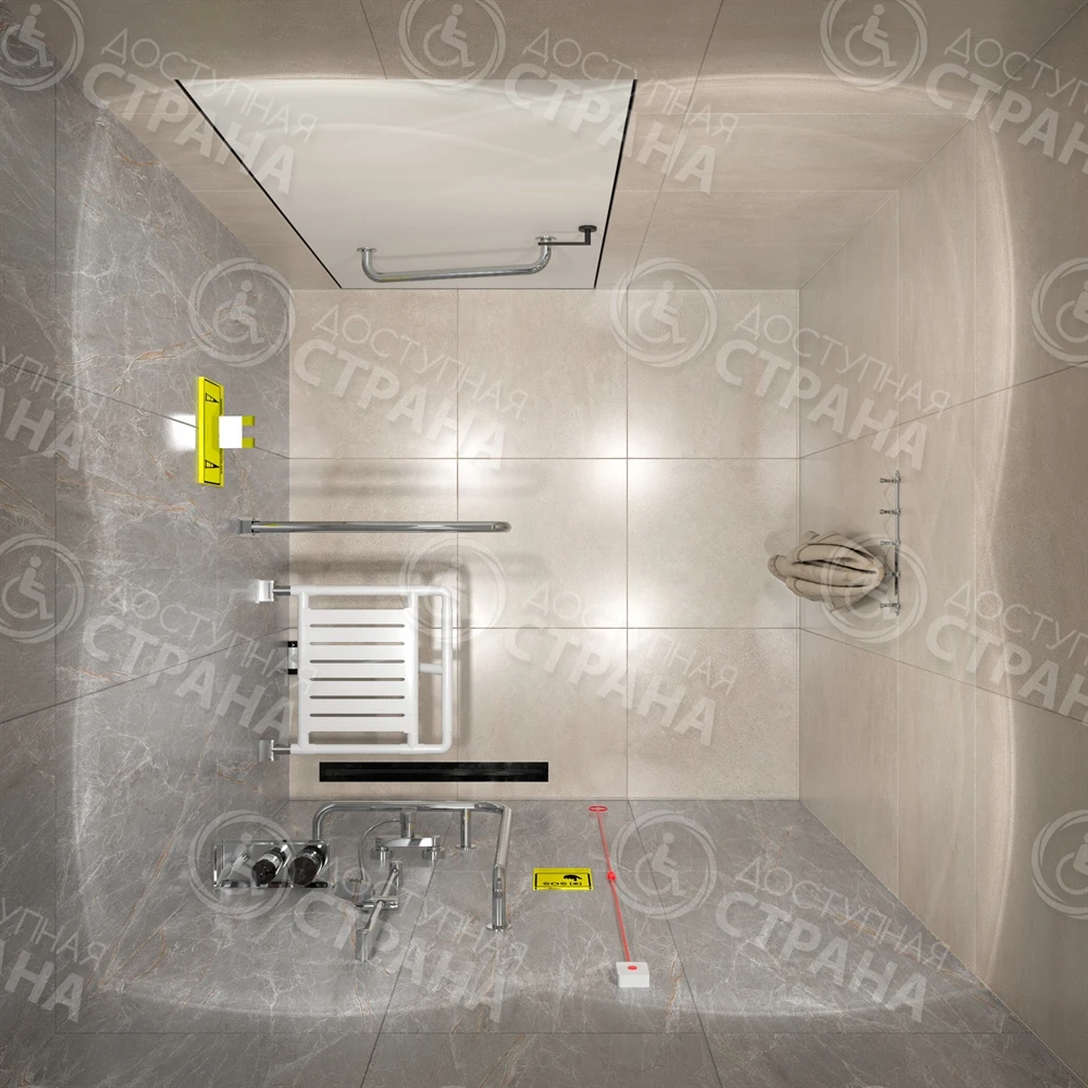 В соответствии с действующими нормами СП 59.13330.2020 душевая должна быть адаптирована для инвалидов специализированным оборудованием (все необходимое учтено в наборе!).