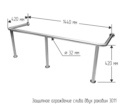 Защитное ограждение слива двух раковин позволяет надежно защитить слив от возможного повреждения со стороны человека с ограничением физических возможностей. Изделие выполнено из качественной нержавеющей стали, к тому же оно абсолютно безопасно для пользователя. Конструкция имеет 4 опоры, которые позволяют надежно прикрепить изделие к полу и стене.