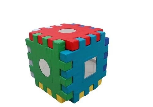 Мягкий зеркальный куб изготовлен из поролона, покрытого винилскожей. Состоит из 6 разноцветных модулей, на каждом встроено маленькое акриловое зеркало. Модули соединяются между собой по типу пазла.