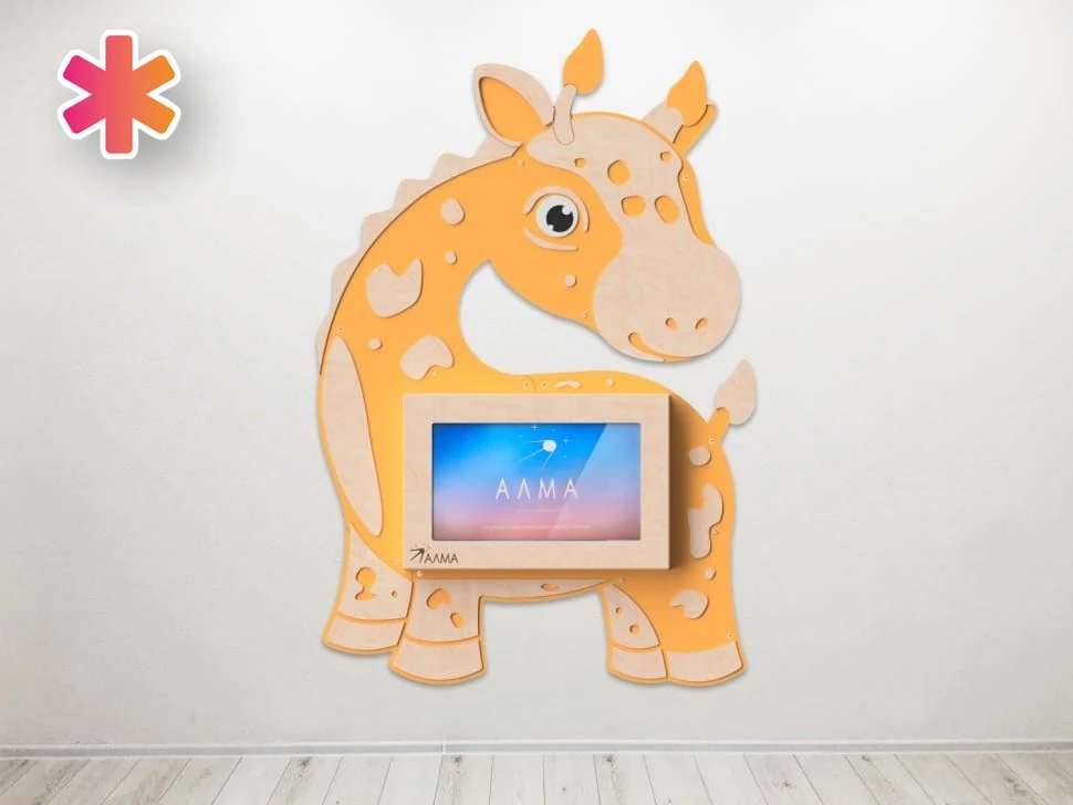 Настенная панель «Жираф» со встроенной интерактивной сенсорной панелью 32 дюйма. Это одновременно декоративное оформление стен и развивающая игрушка, ведь на панели установлен пакет игрового и обучающего ПО.
