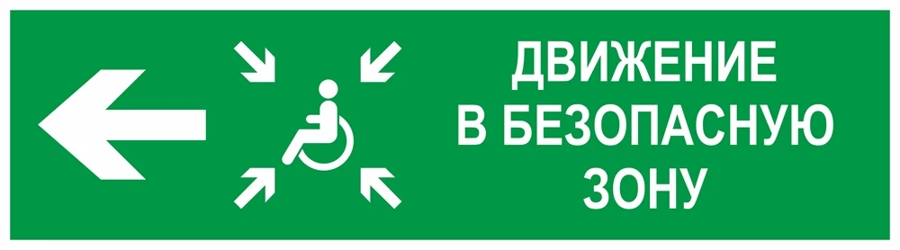 Направление движения в безопасную зону налево для инвалидов, фотолюминесцентный